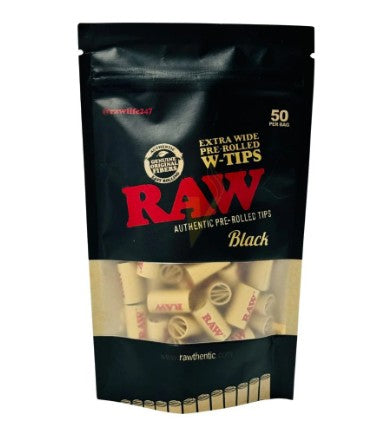 RAW BLACK EXTRA WIDE PRE ROLLED TIPS (50CT/BAG)