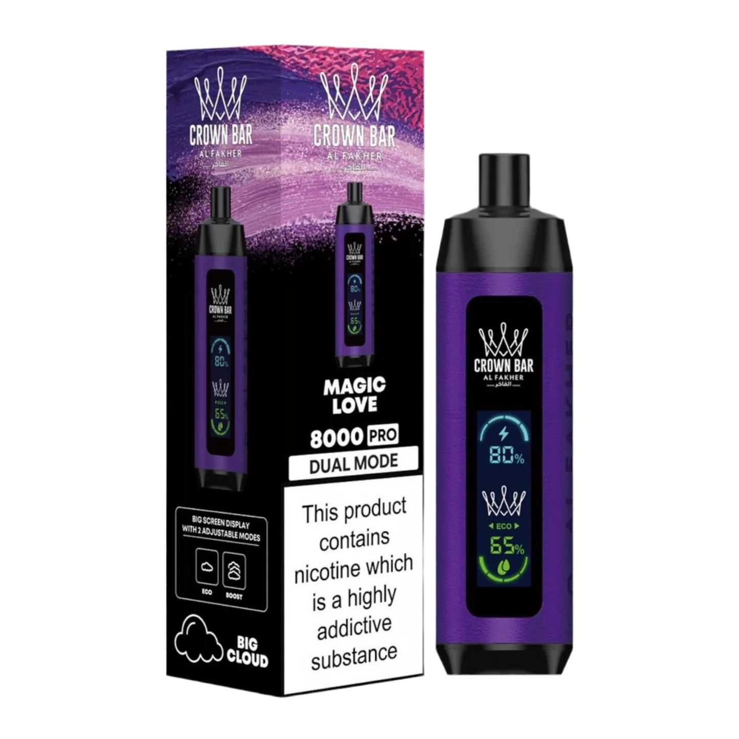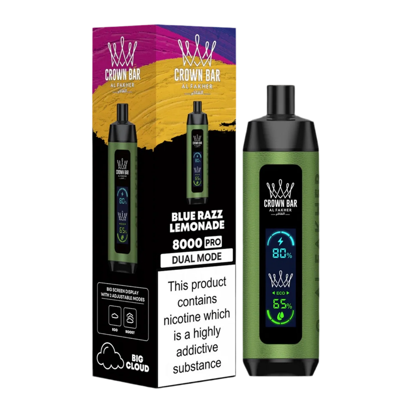 Order your Al Fakher Crown Bar 8000 Pro Dual Mode Disposable today and indulge in the variety of delicious flavors and long-lasting puffs that this exceptional vape device has to offer.