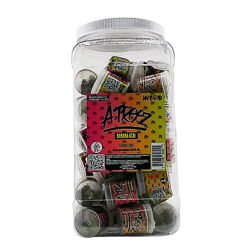 Indulge in the exquisite ATREEZ 1 Gram THC-A Flowers in the Animal Mints variant, a perfect blend of flavors and effects. Each jar contains 56 individual 1-gram pre-rolls filled with high-quality hybrid strains that promise a delightful experience.