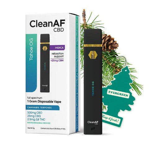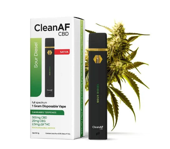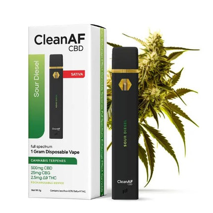 CLEAN AF CBD FULL SPECTRUM CANNABIS TERPENES 1G DISPOSABLE VAPE (500MG CBD + 25MG CBG + 2.5MG D9)