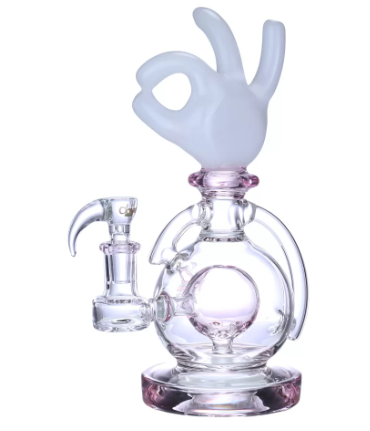 Express your style with the Clover Glass 9" OK Hand Gesture Globe Perc Water Pipe, offering a unique design and smooth hits. Crafted from high-quality borosilicate glass, this water pipe is known for its durability and heat resistance.