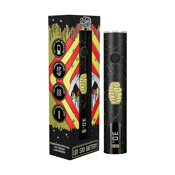 The Dome Wrecker LED 510 Cart Battery is designed to be compatible with any 510 threaded vape cartridge, offering you flexibility and convenience. Whether you are a beginner or a seasoned user, this battery is perfect for enhancing your vaping sessions.