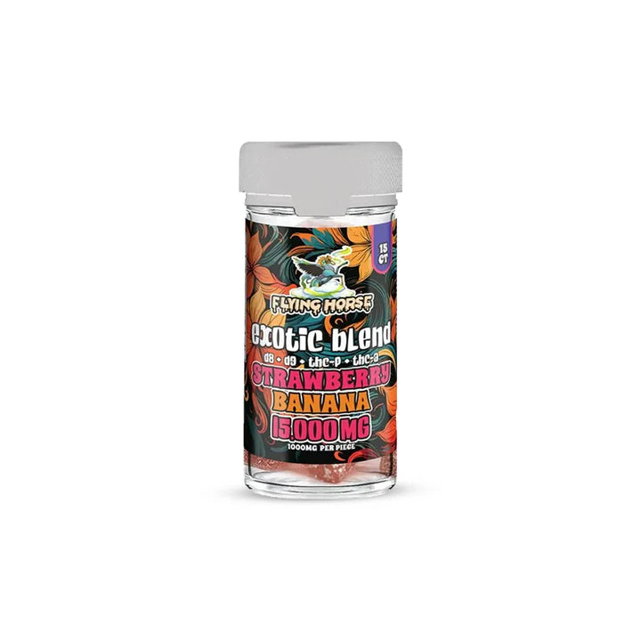 Indulge in a flavorful and potent experience with Flying Horse Exotic Blend Gummies. These gummies offer a unique blend of cannabinoids including Delta-8 (D8), Delta-9 (D9), THCP, and THCa, providing a diverse and exciting experience for cannabis enthusiasts.