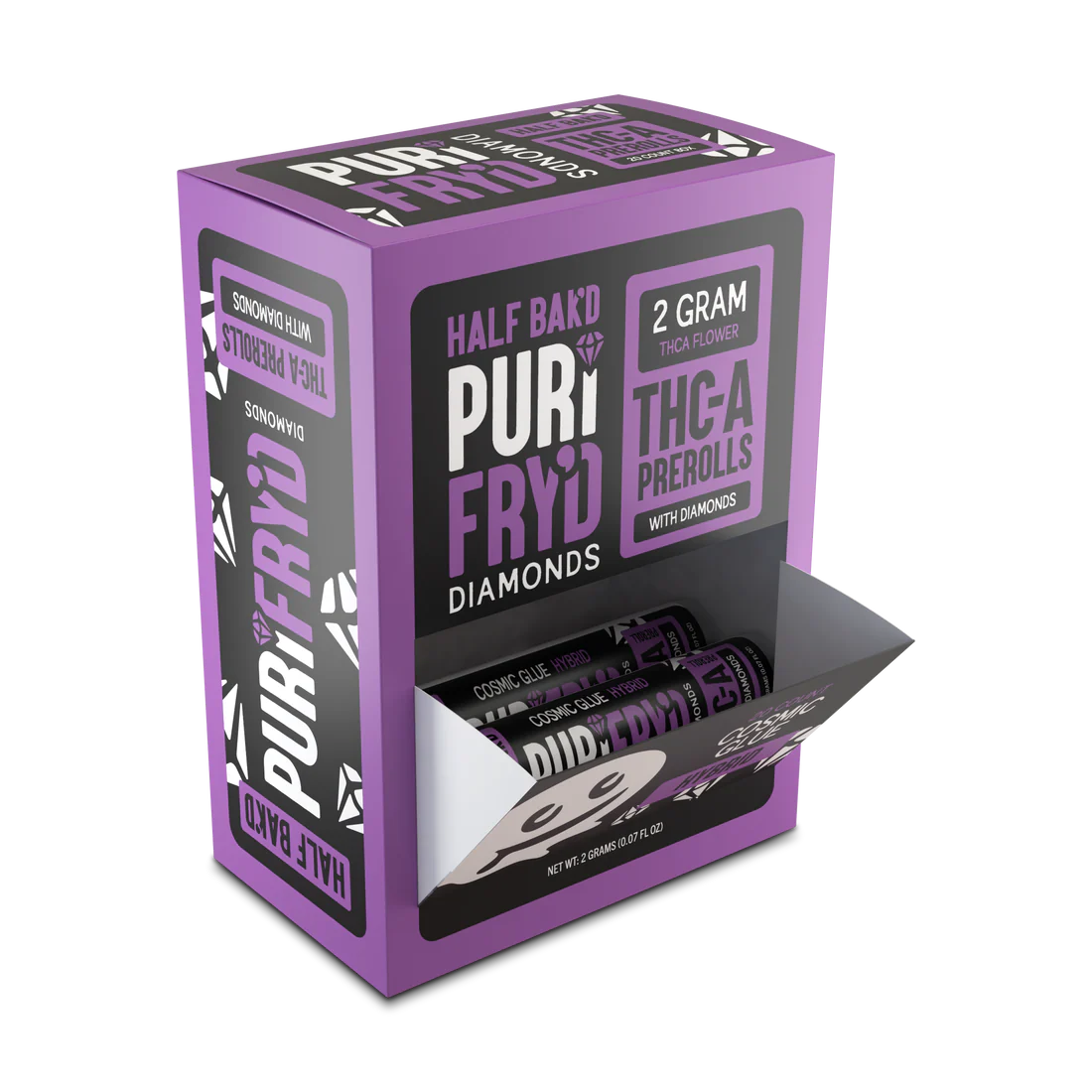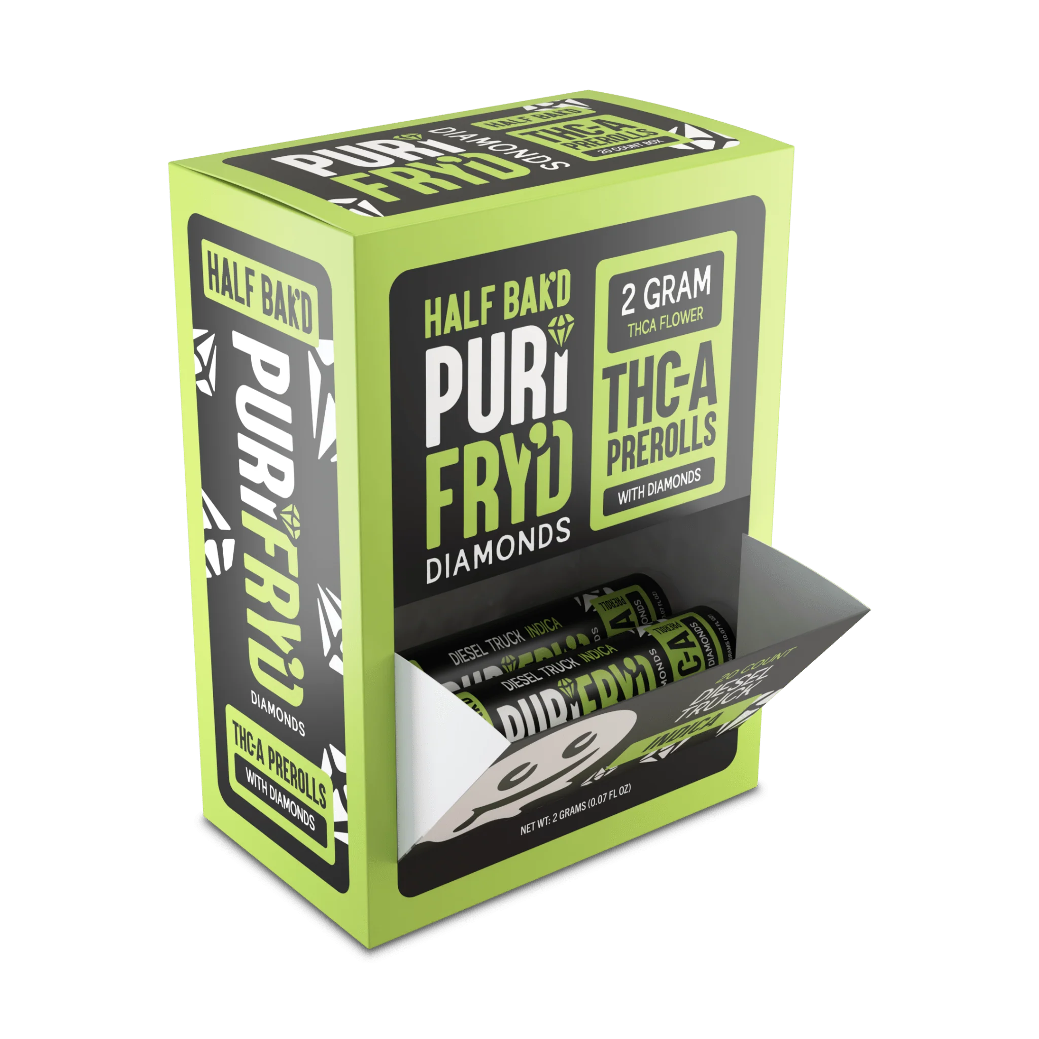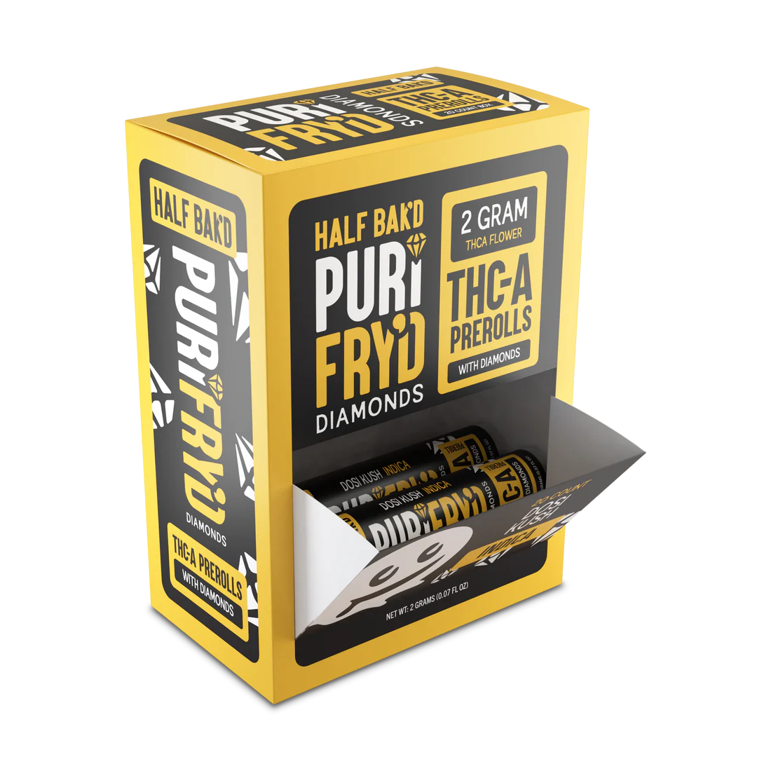 HALF BAK'D PURIFRY'D DIAMONDS THCA 2G PRE ROLLS (2OCT BOX)