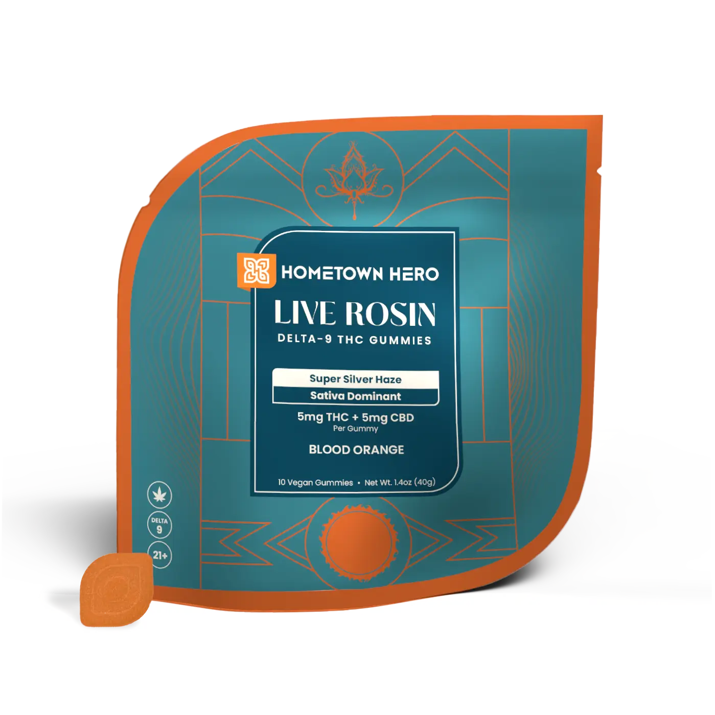 Experience the magic of Hometown Hero's 5mg D9 Live Rosin Gummies and elevate your cannabis enjoyment to new heights.