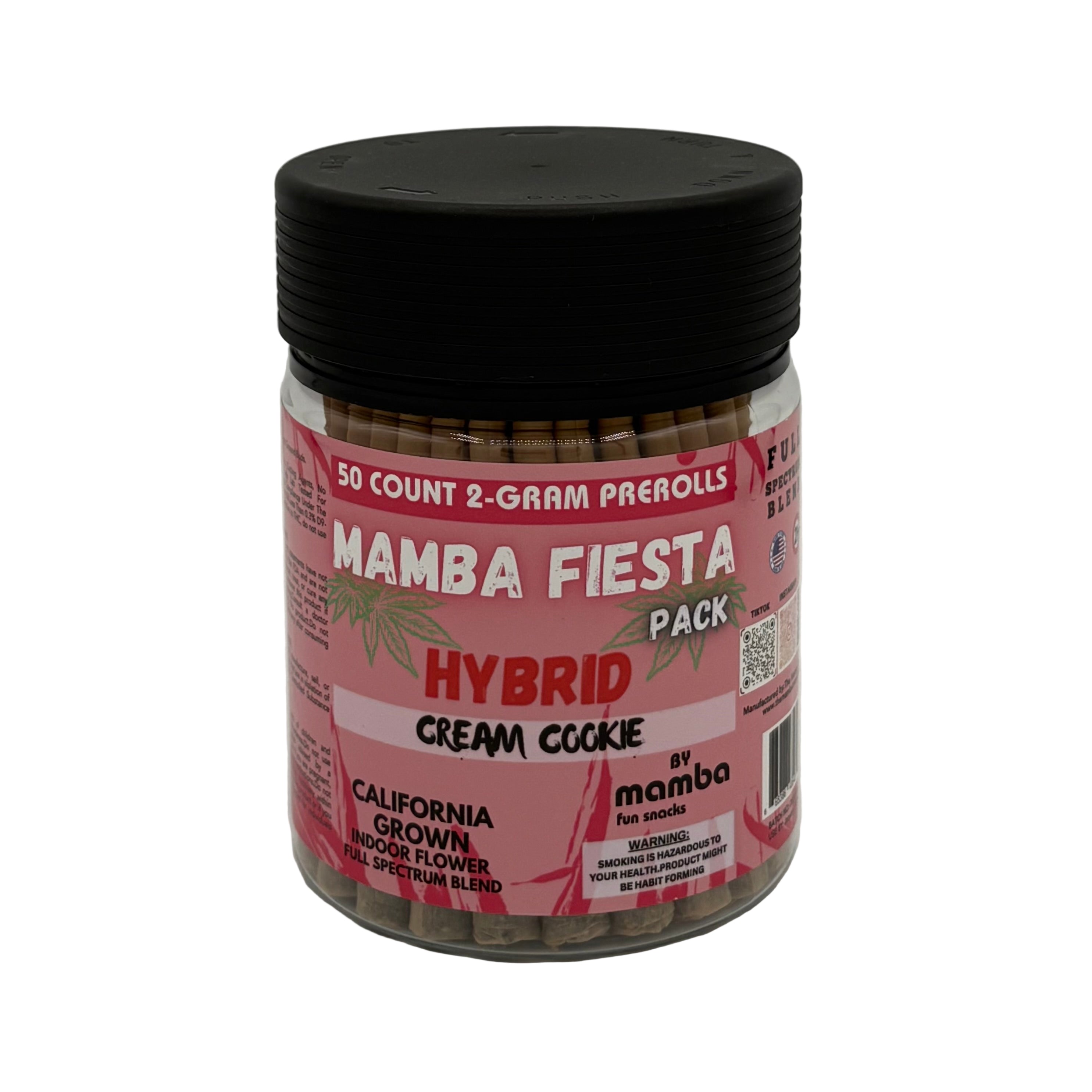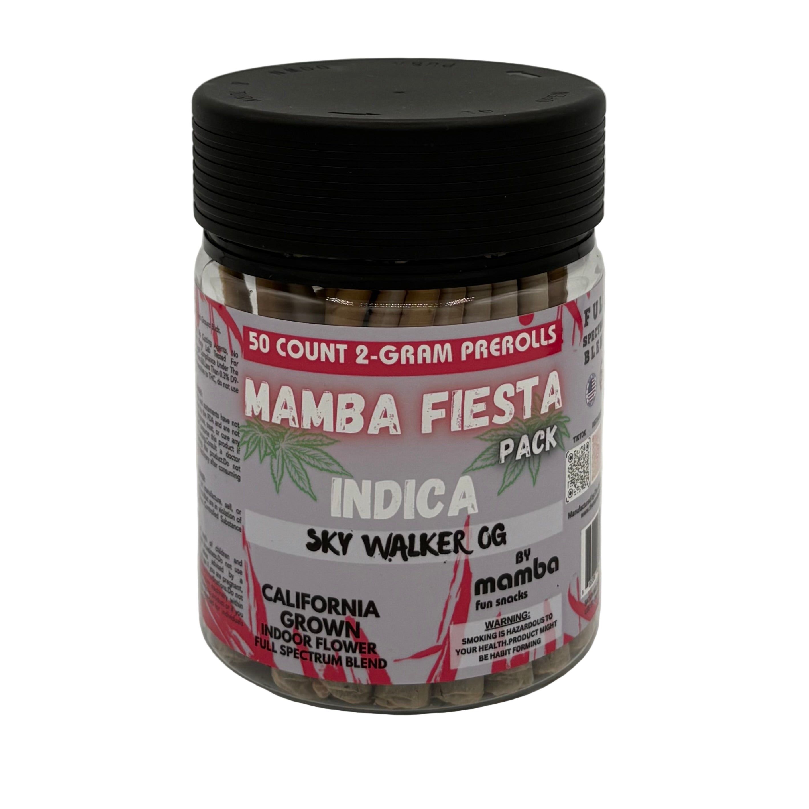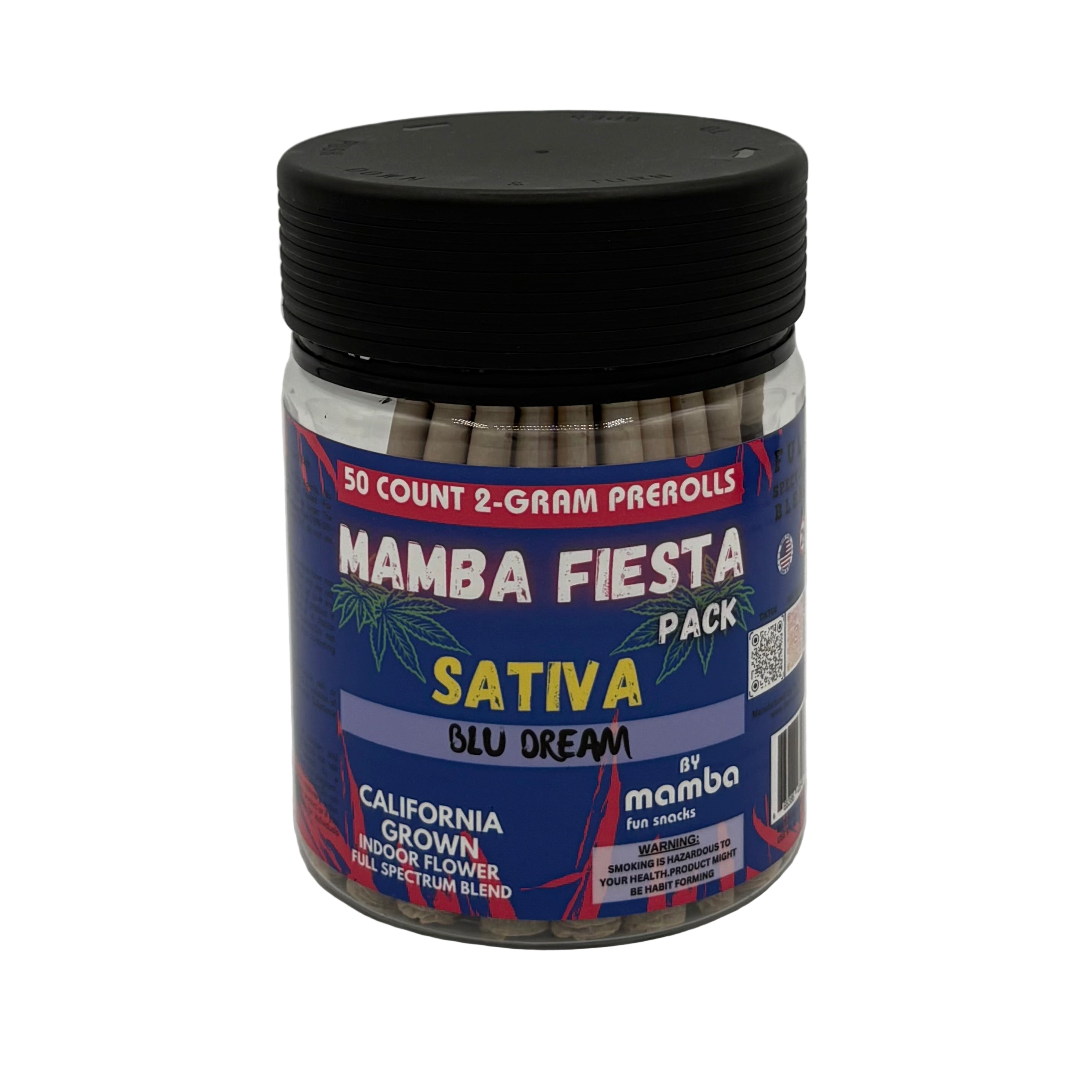 Indulge in a variety of premium cannabis strains with the MAMBA FIESTA PACK. This full spectrum blend features 2-gram pre-rolls in a convenient 50-count jar, perfect for enthusiasts looking to explore different effects.