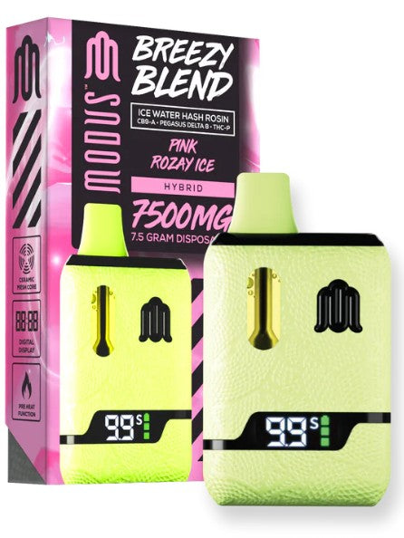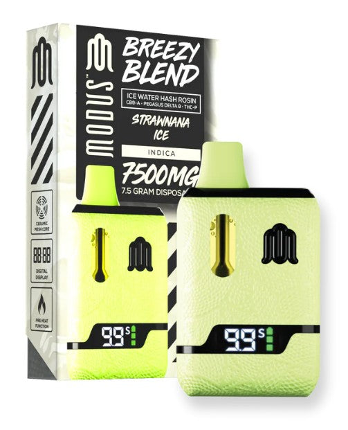 Experience the future of cannabis with Modus Breezy Blend Disposable Vape 7.5g. This sophisticated blend of Ice Water Hash Rosin, CB9-A, Delta-8, and THC-P offers a game-changing mix of premium ingredients for a powerful encounter with every puff.