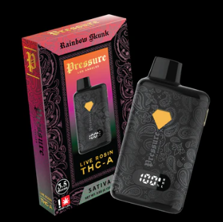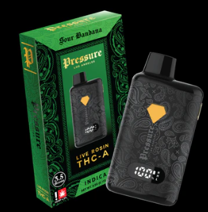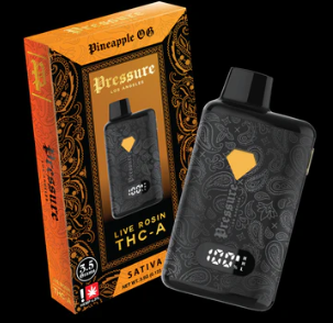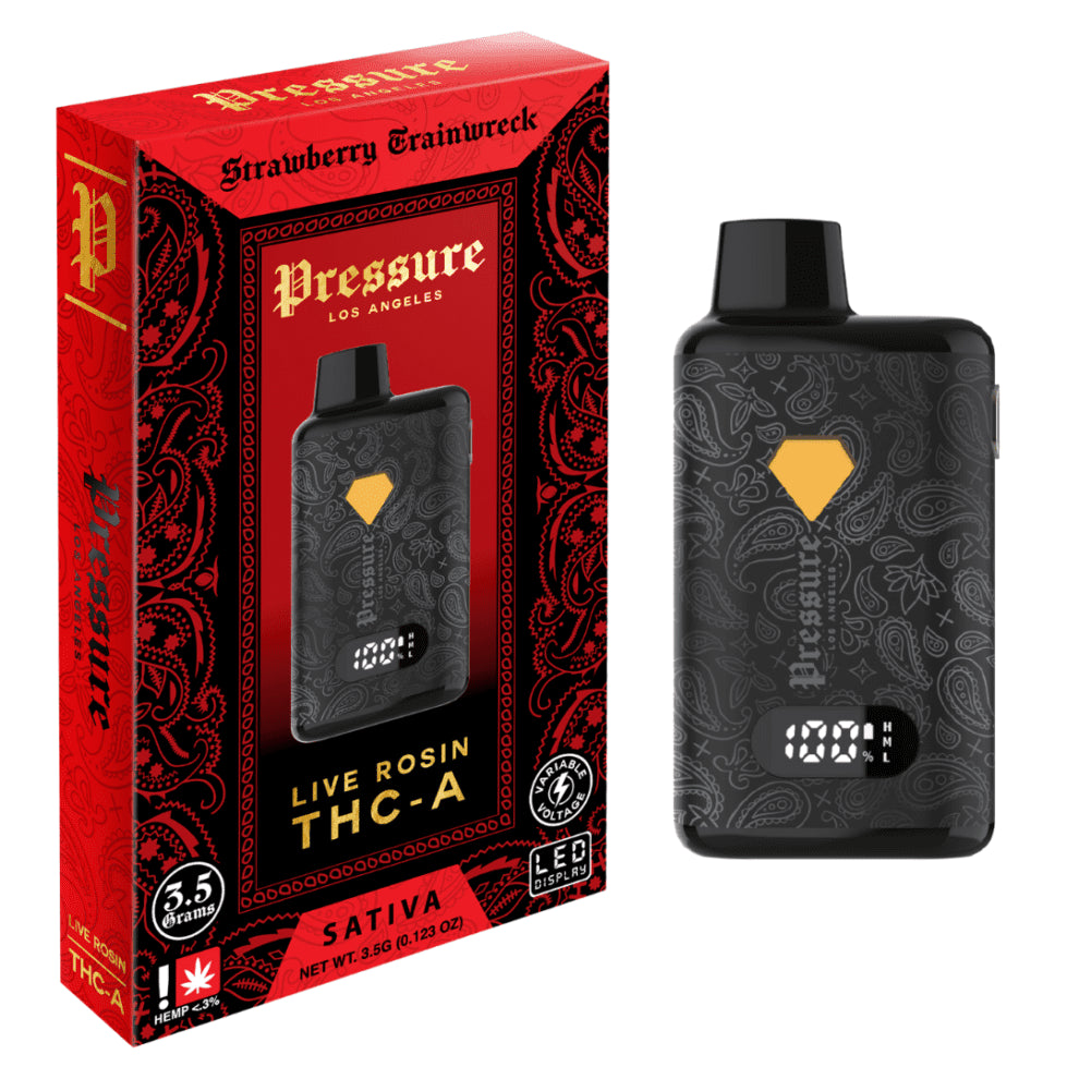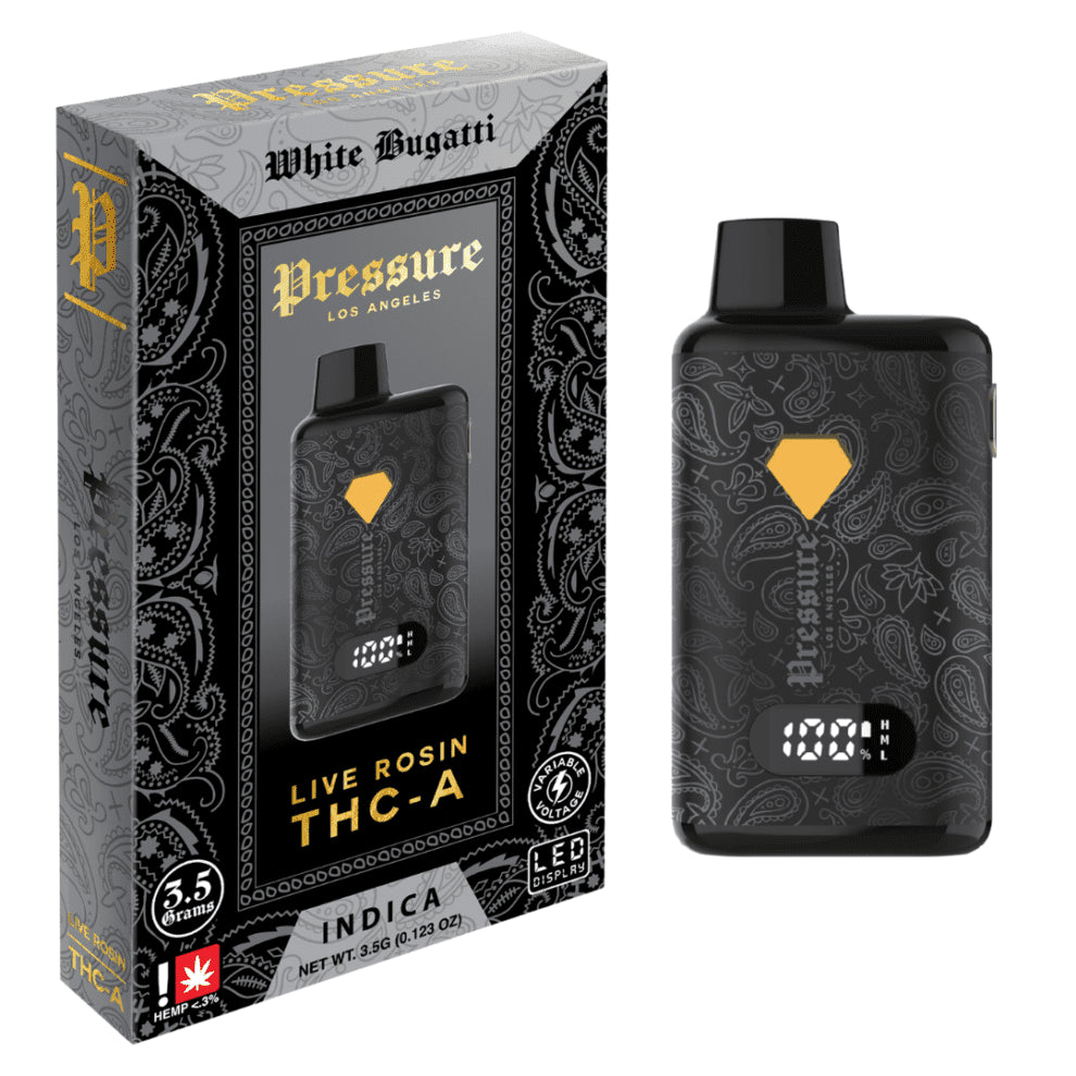Experience the ultimate in potency and flavor with the PRESSURE 3.5G Live Rosin THC-A Disposable. This revolutionary product features an ultra-potent blend of THC-A, Delta 8 THC, Delta 8 THCv, HHC, HHCP, Delta 9 THCP, and CBN, combined with live rosin extract for maximum effect.