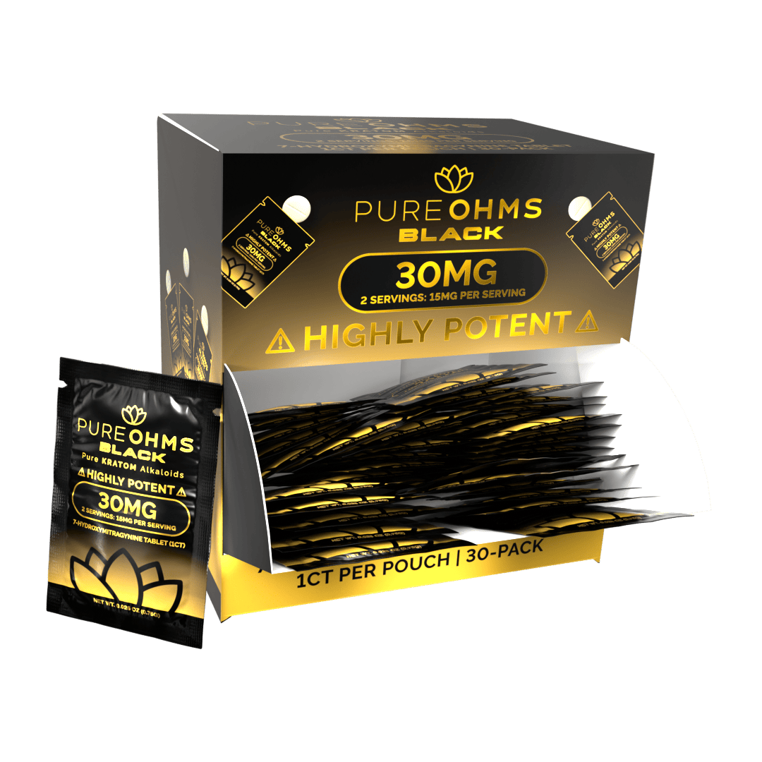 Experience the power of black kratom variants with PURE OHMS 7 HYDROXYMITRAGYNINE 30MG TABLETS. Elevate your kratom experience with this pack that combines quality, convenience, and potency in every tablet.