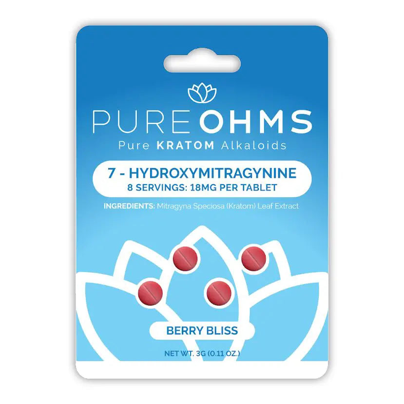 Experience the pure botanical goodness with Pure Ohms Pure Kratom Alkaloids tablets. Each tablet is precisely dosed with 7-hydroxymitragynine, a key alkaloid known for its strong effects and quick action. With 4 tablets per package and a total of 8 servings, this product offers a convenient and reliable kratom experience.