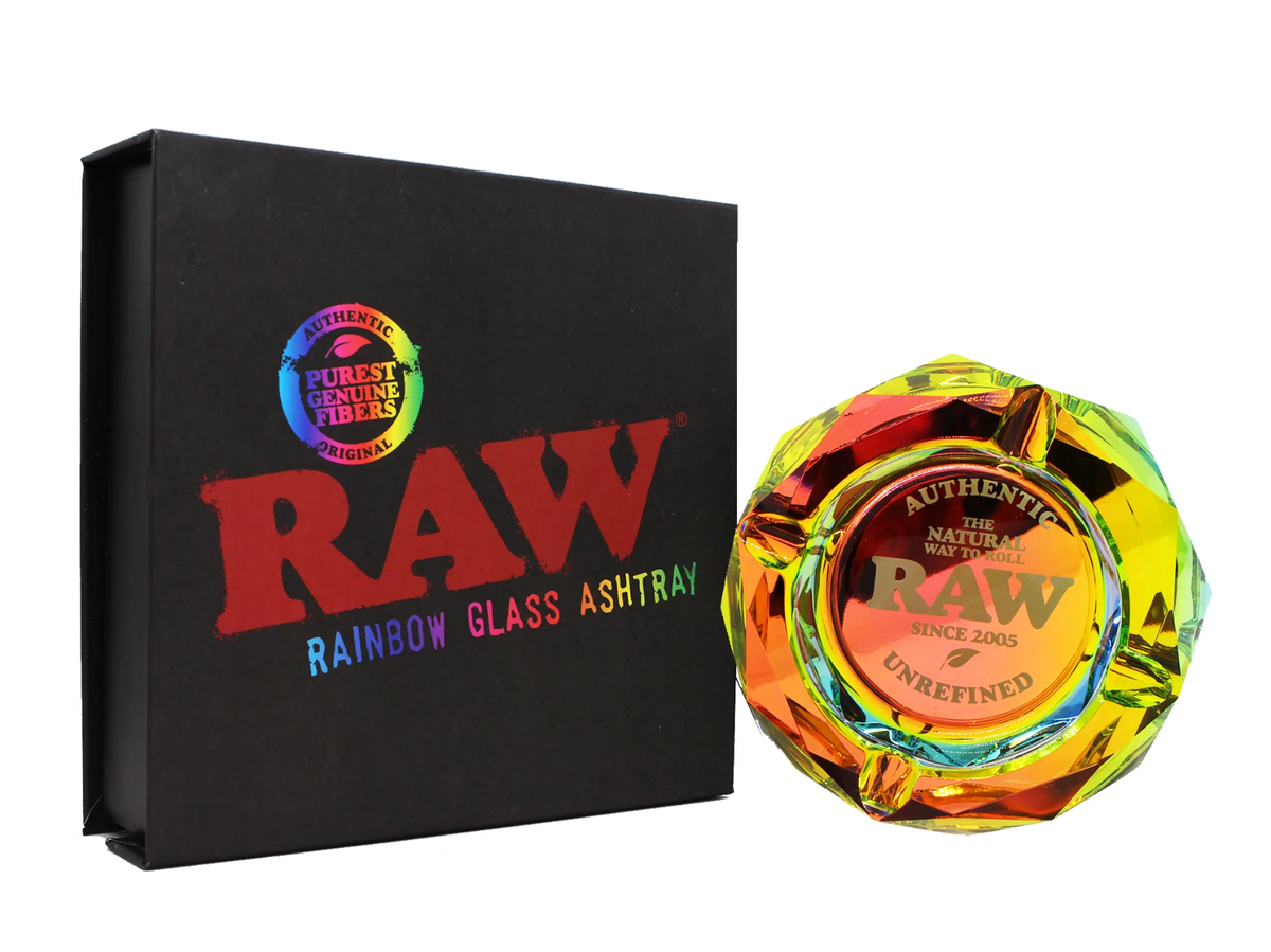 The mesmerizing prism diamond-facet cut of the ashtray enhances its visual appeal, while the vintage-inspired design gives it a classic yet modern feel. Whether you're a seasoned smoker or a collector of unique smoking accessories, the RAW 6" Rainbow Glass Ashtray is a must-have addition to your collection.