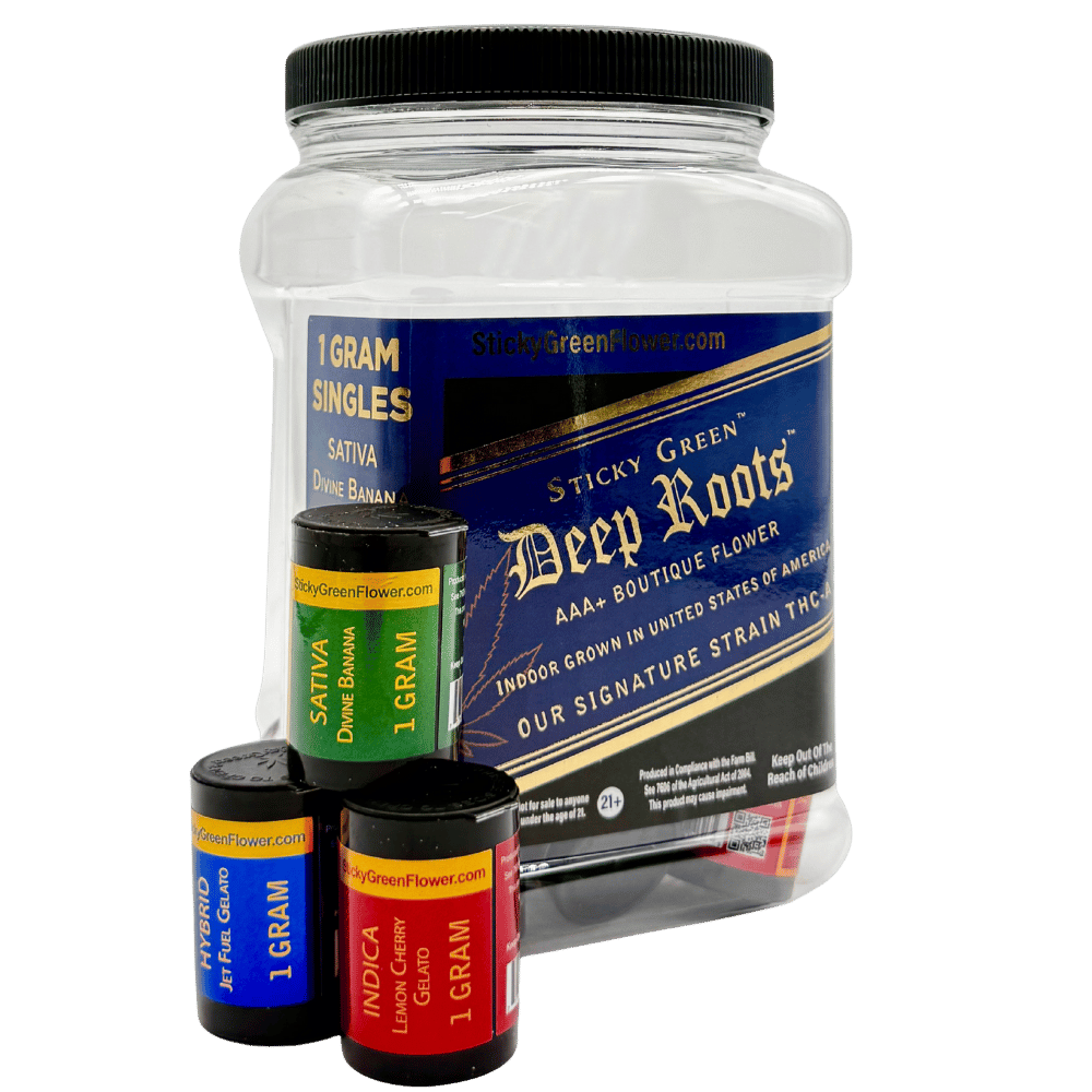 STICKY GREEN 1G THCA FLOWER DEEP ROOTS LINE (20CT JAR)