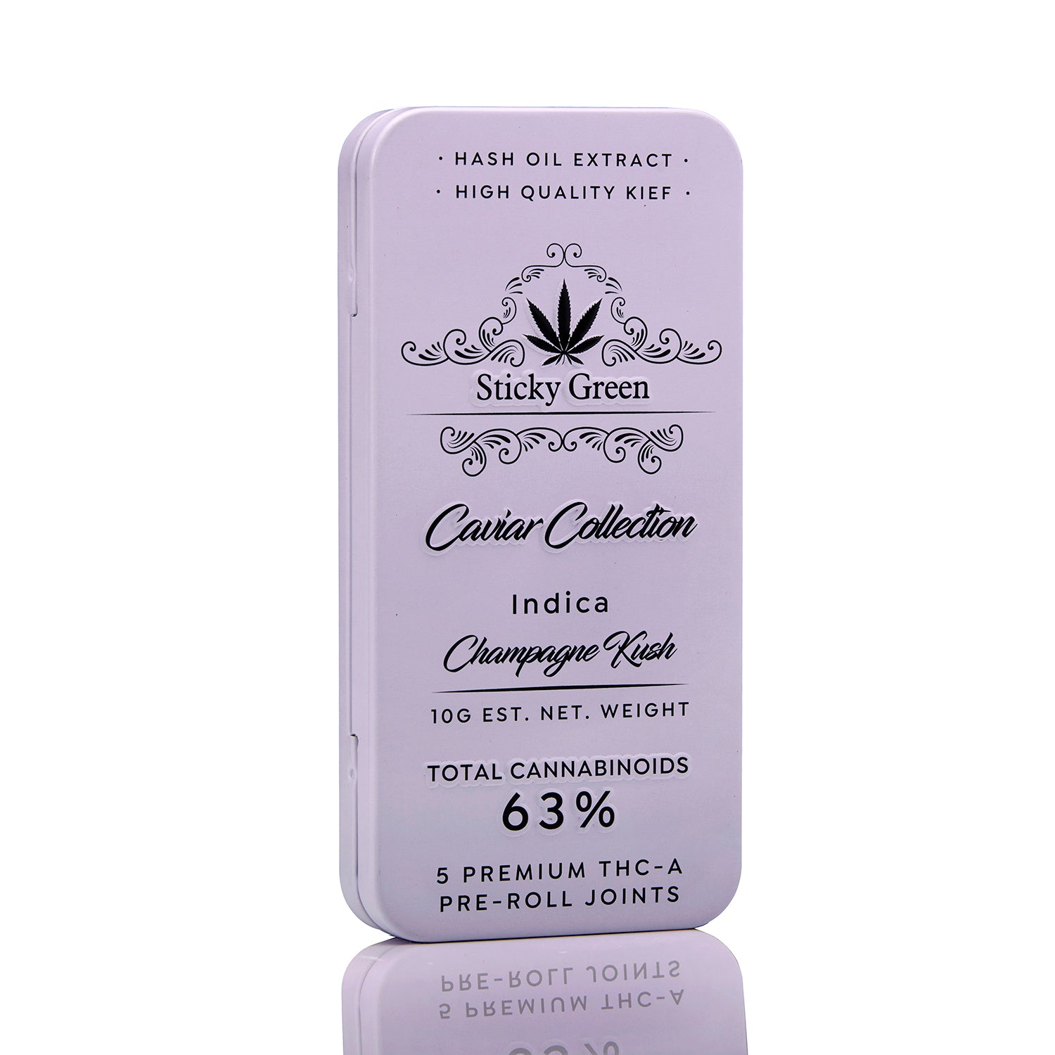 Discover the exquisite Sticky Green Caviar Collection featuring premium THC-A pre-roll joints. Each pack contains 5 pre-roll joints, each filled with 2g of top-quality cannabis blend. Enjoy the convenience and luxury of these expertly crafted pre-rolls.