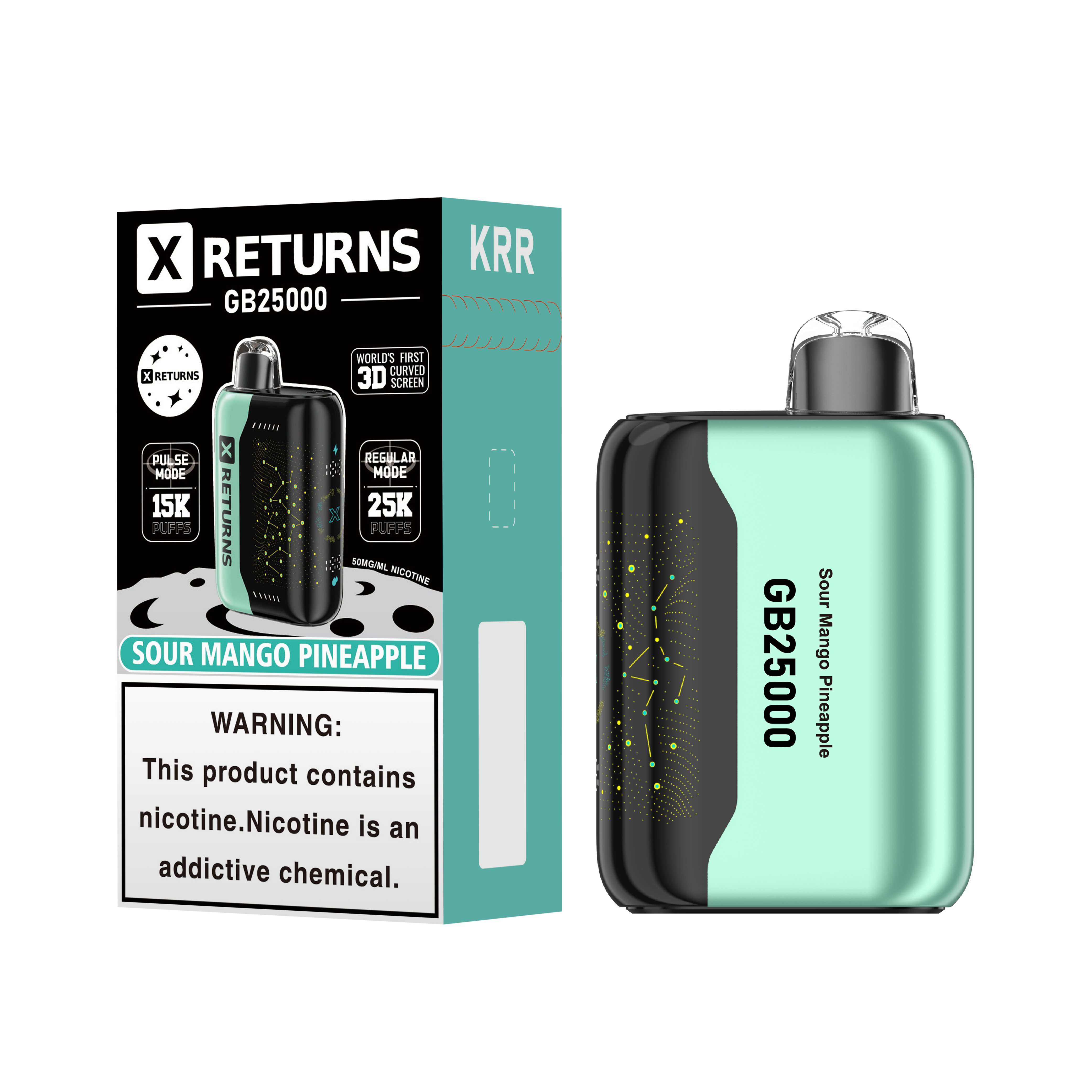 Experience the convenience and performance of the X RETURN disposable today and enjoy up to 25,000 puffs of premium vapor in each pack.